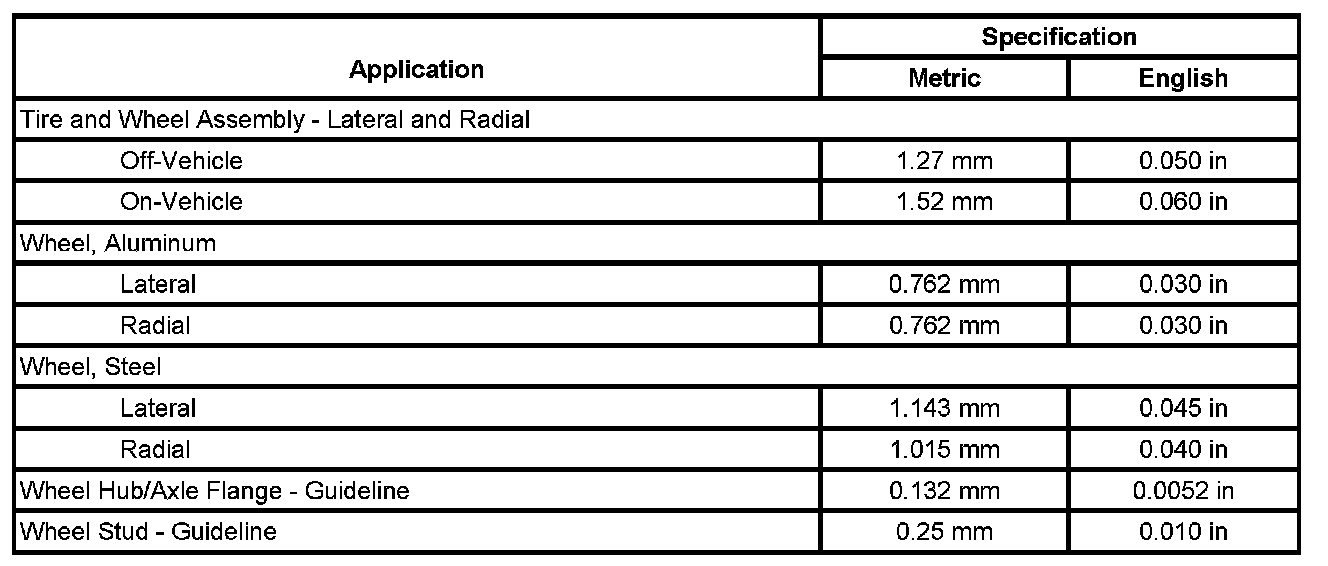 Tire and Wheel Runout Specifications