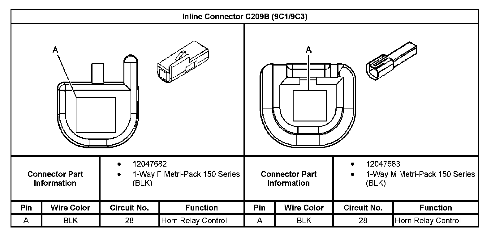 Inline Connector C209B (With RPO Code 9C1/9C3):