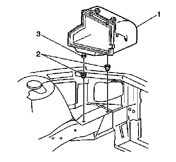 1. Install the air cleaner housing by pushing the housing into the 2 rubber grommets (2) in the engine compartment.