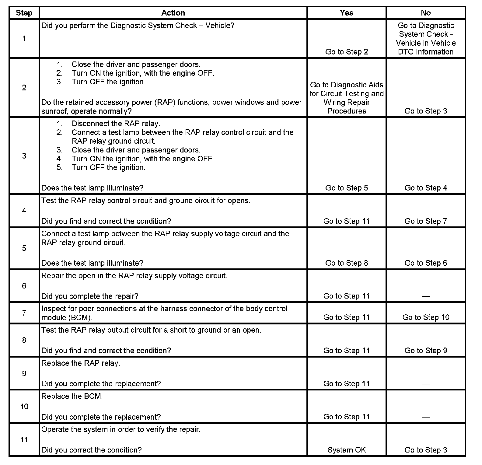 Retained Accessory Power (RAP) Inoperative