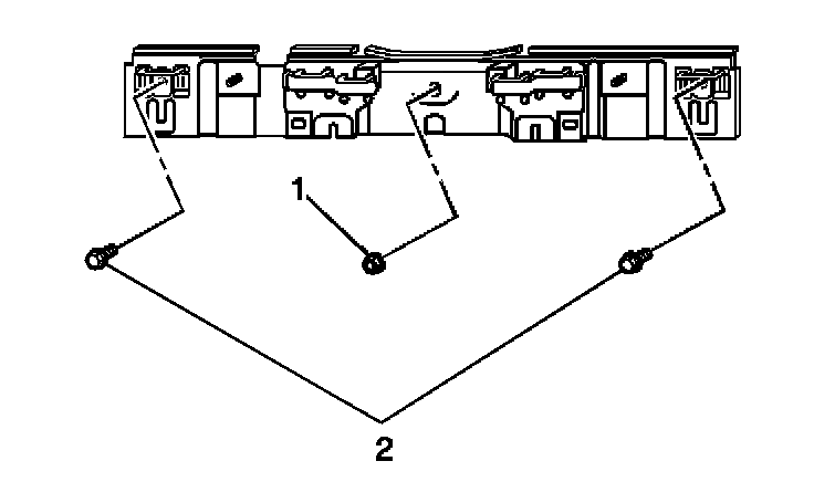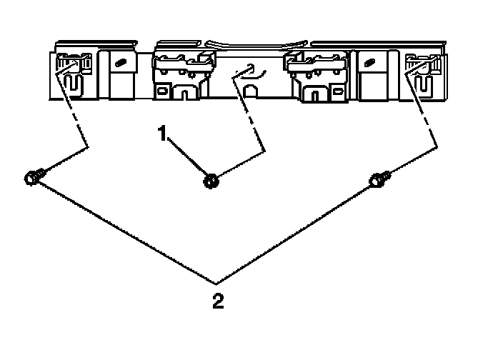 3. Remove the bracket nut (1) located between the center seat belts.
