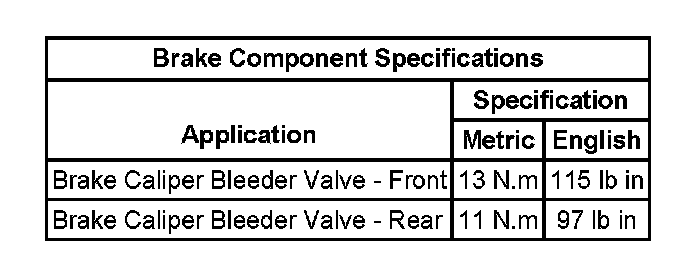 Brake Component Specifications:
