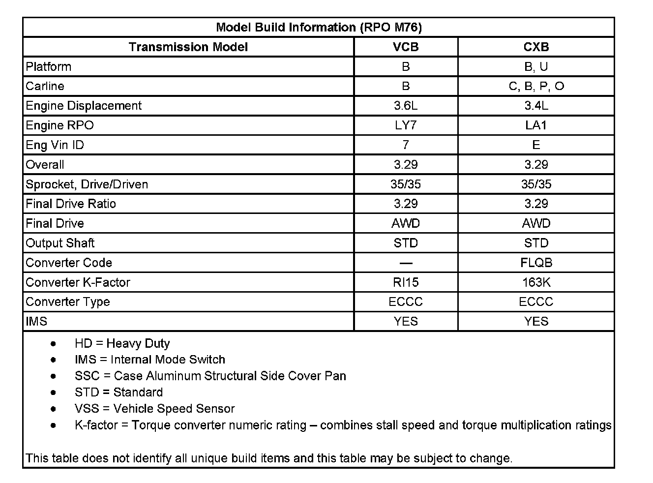 Model Build Information (M76)
