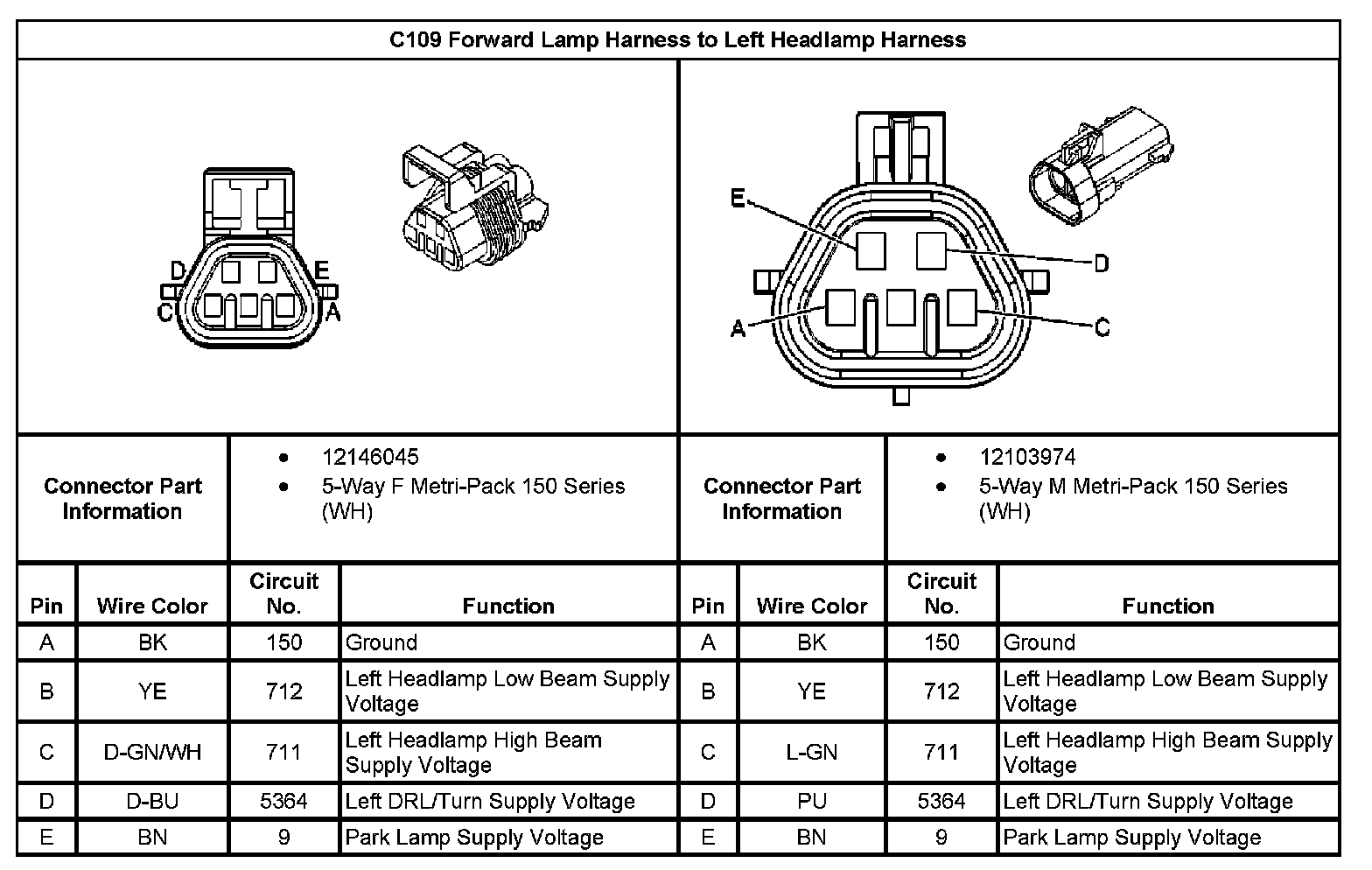 C109 Forward Lamp Harness to Left Headlamp Harness: