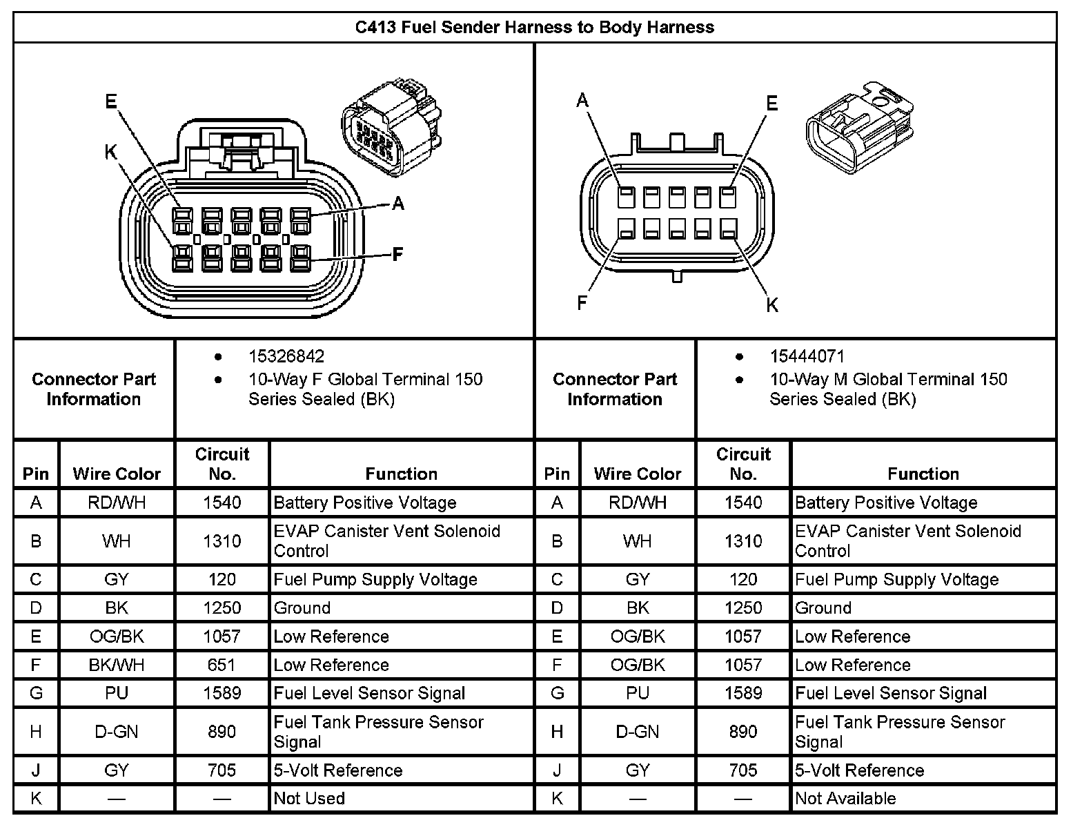 C413 Fuel Sender Harness to Body Harness: