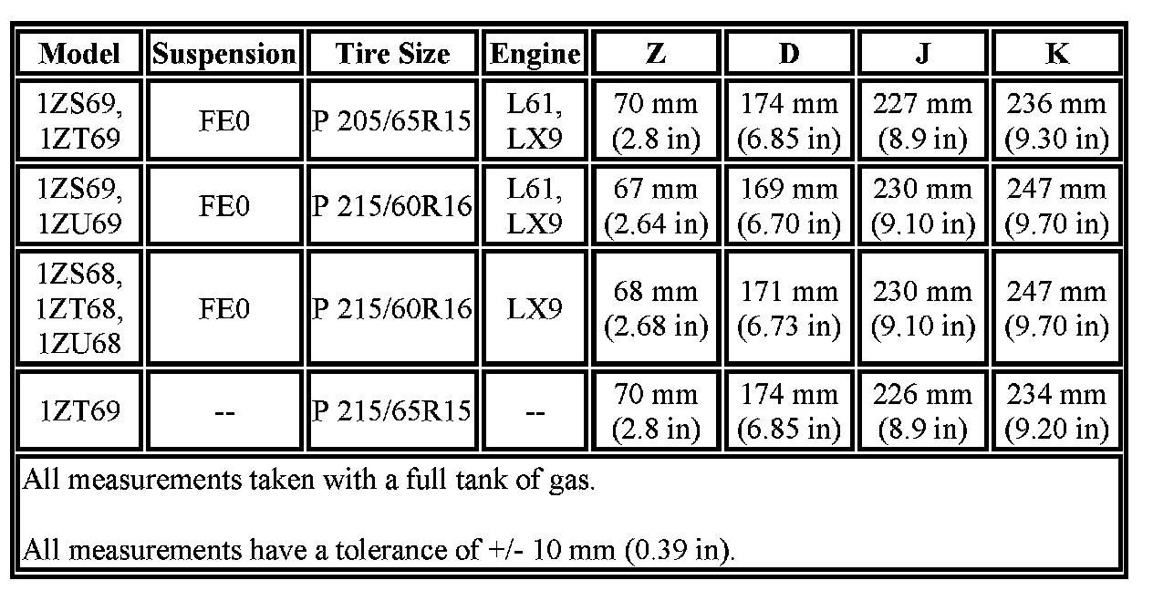 Trim Height Specifications: