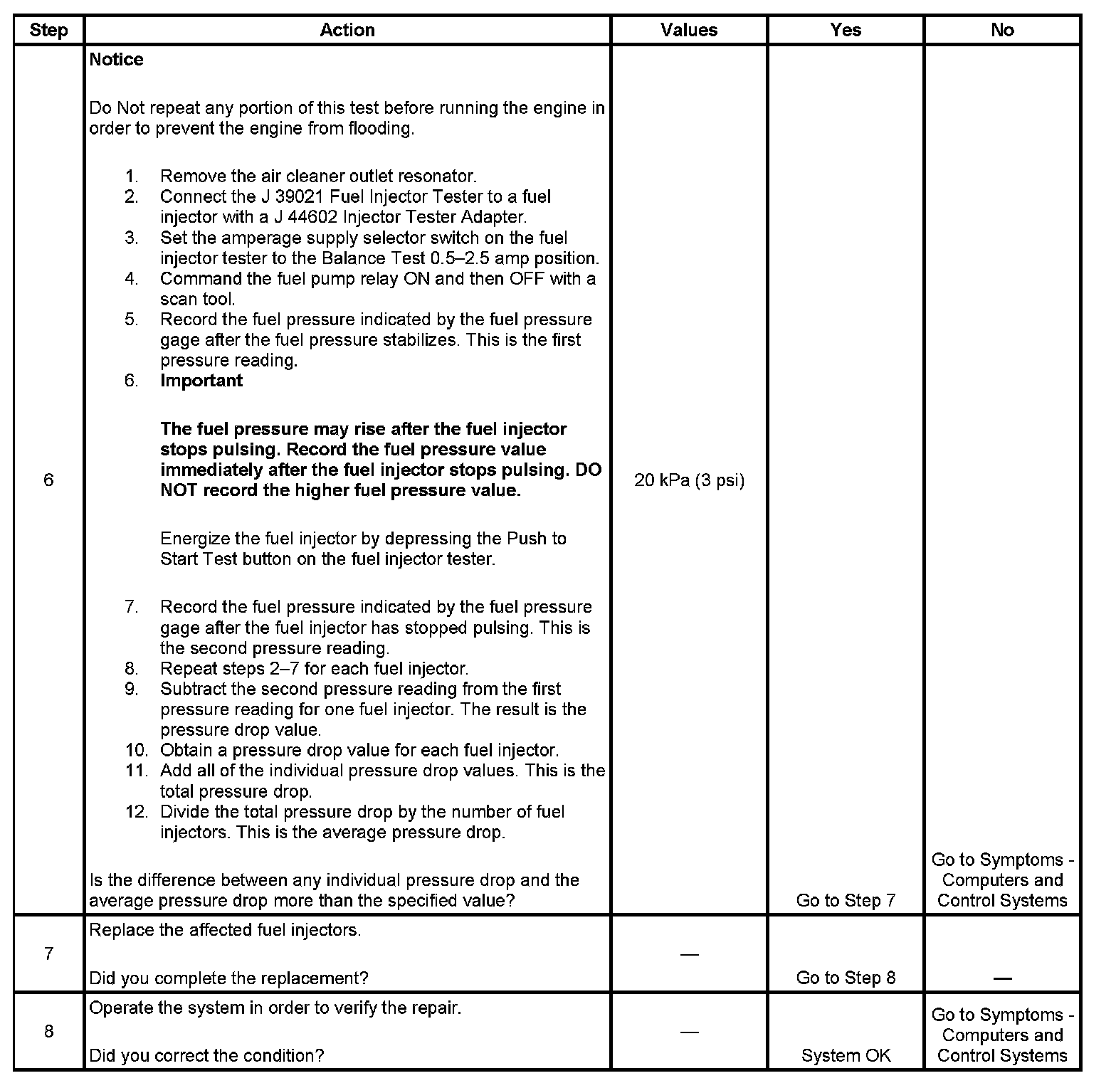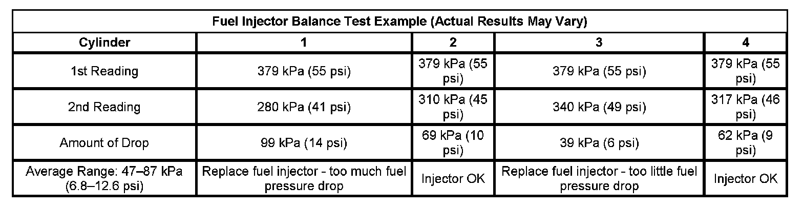 Fuel Injector Balance Test Example (Actual Results May Vary):