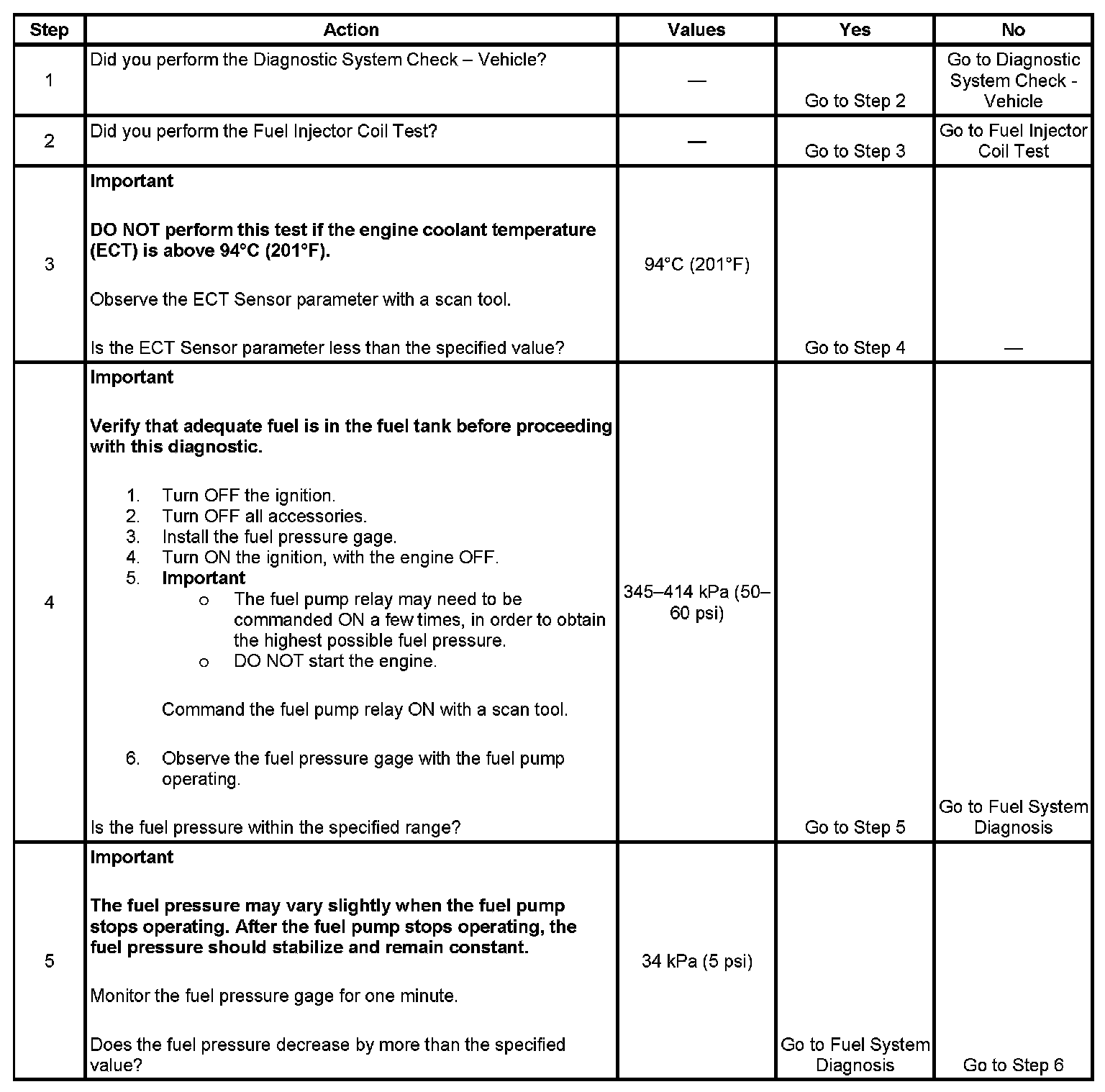3. The engine coolant temperature (ECT) must be below the operating temperature in order to avoid irregular fuel pressure readings due to hot soak fuel boiling.