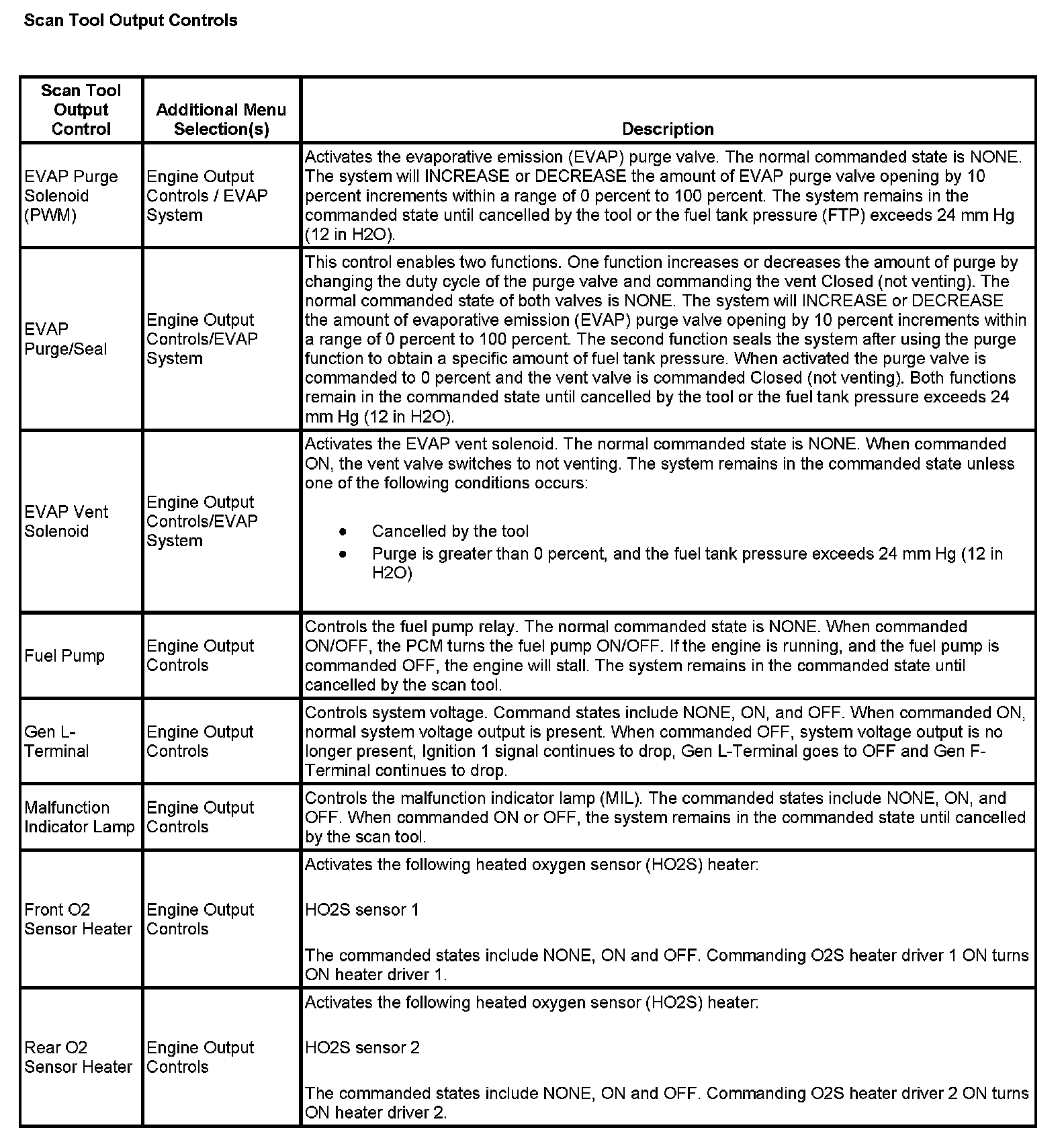 Scan Tool Output Controls: