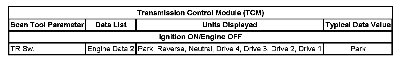Normal Scan Tool Data Values - Transmission Control Module (TCM)