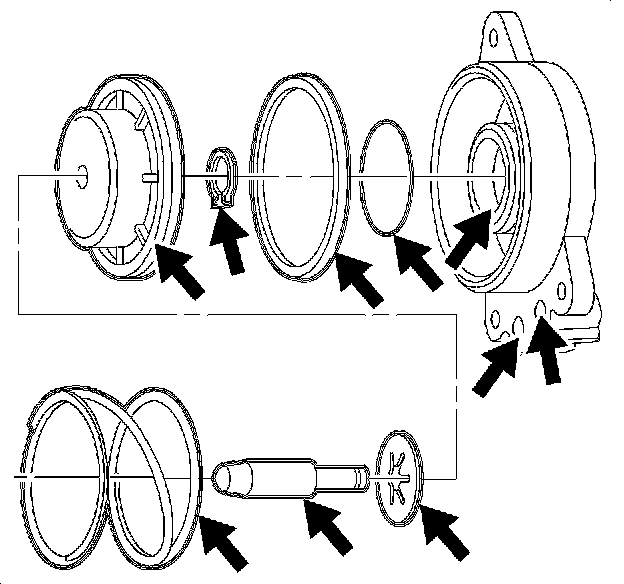 3. Install the new seals onto the servo piston and the servo cover.