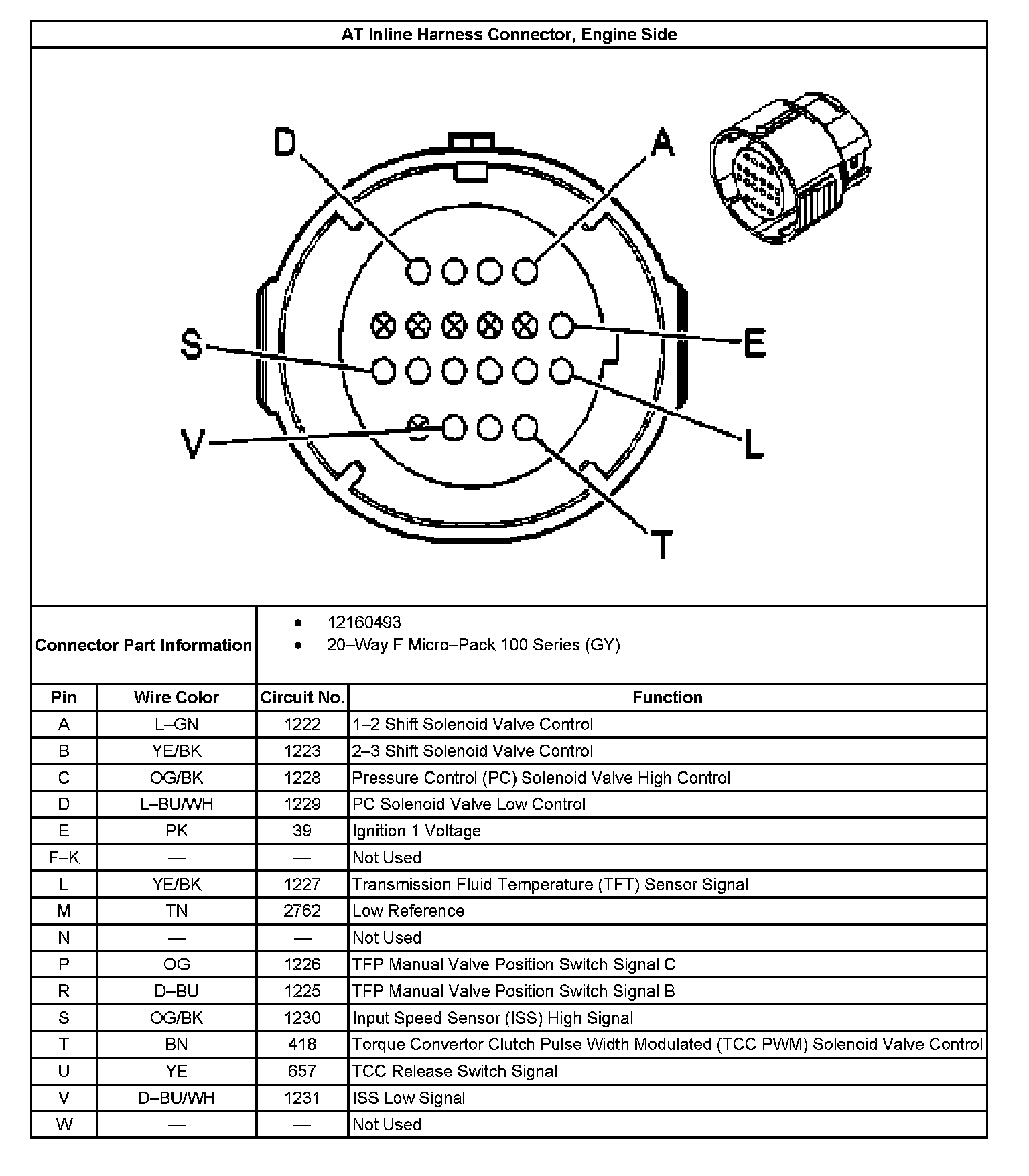 A/T Inline 20-Way Connector Engine Side