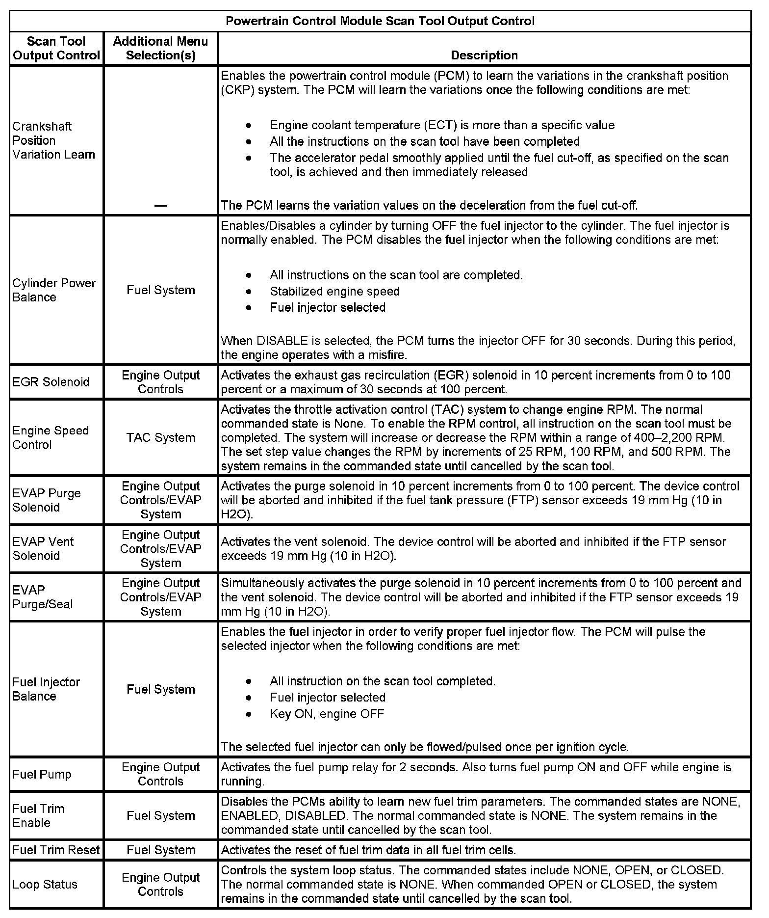 Powertrain Control Module Scan Tool Output Control Part 1: