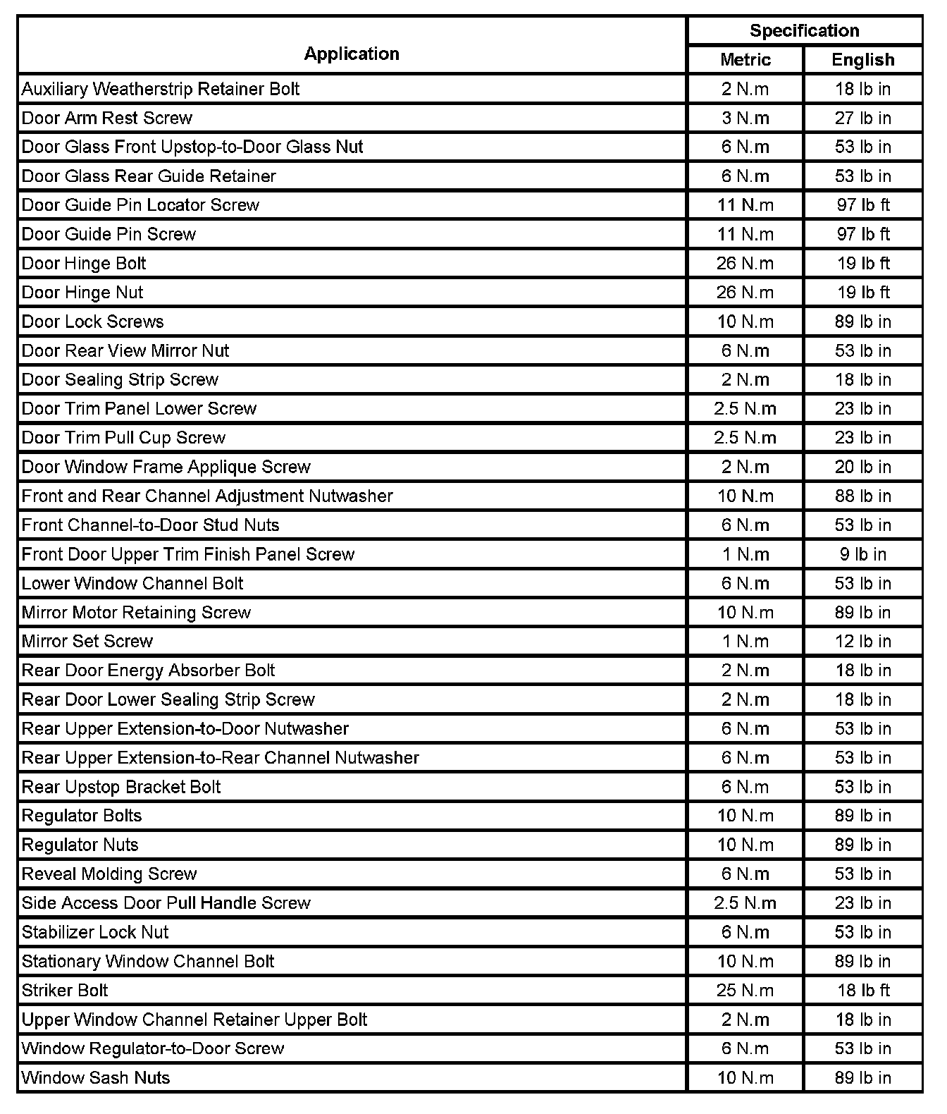 Fastener Tightening Specification