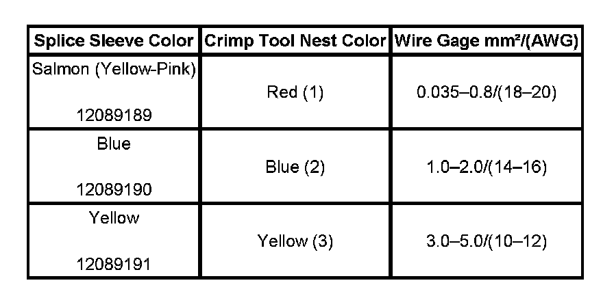 4. Select the proper duraseal splice sleeve according to the wire size. Refer to the above table at the beginning of the repair procedure for the color coding of the duraseal splice sleeves and the crimp tool nests.
