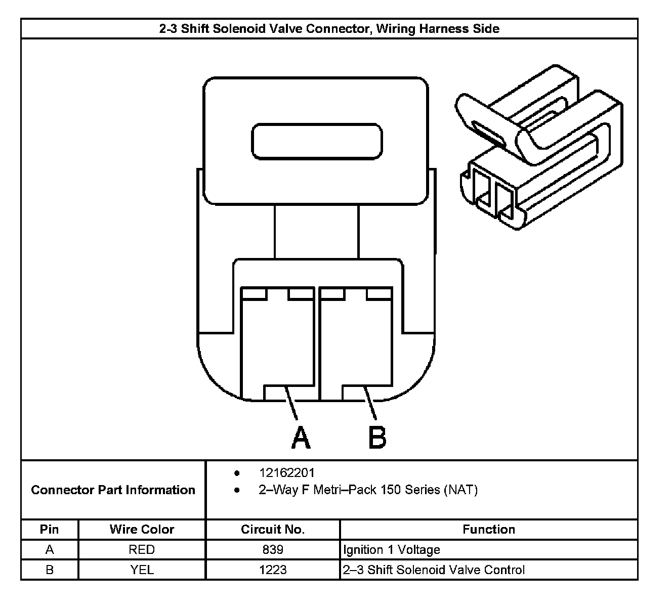 2-3 Shift Solenoid Valve Connector End View, Wiring Harness Side: