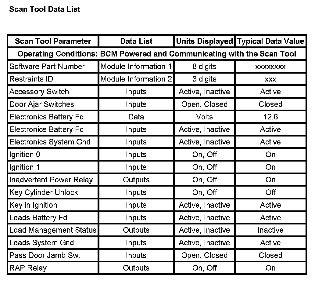 Scan Tool Data List: