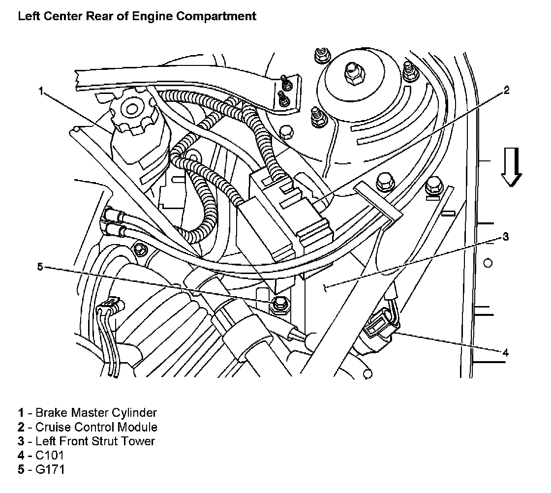 Left Center Rear Of Engine Compartment: