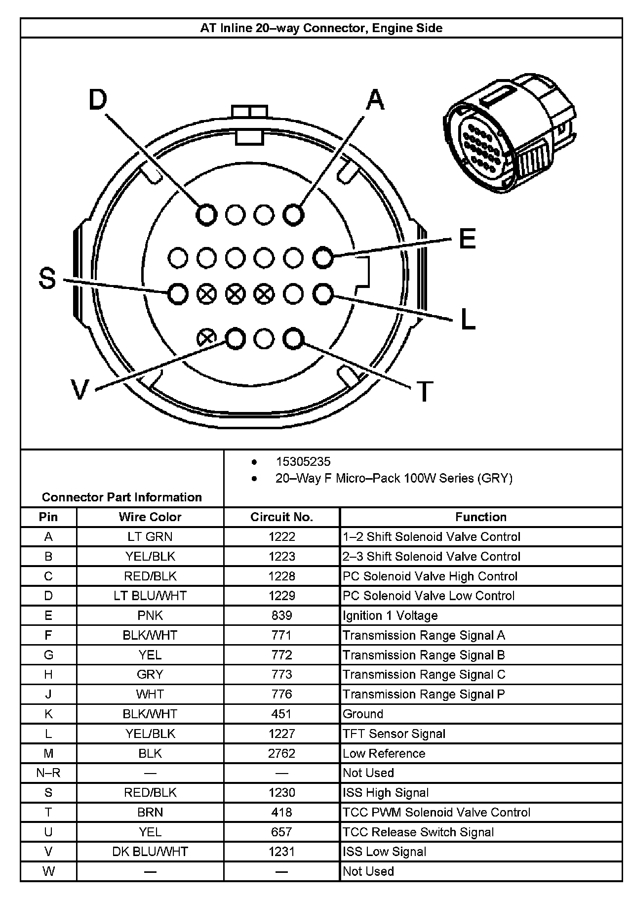 AT Inline 20-Way Connector End View, Transmission Side: