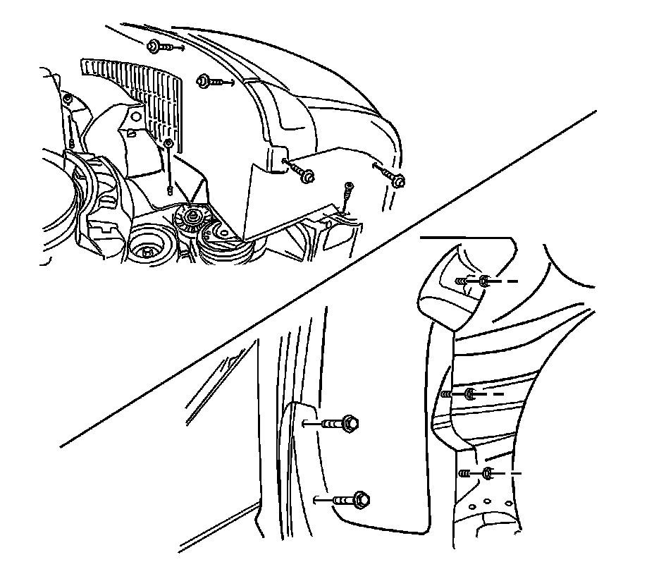 3. Remove the front mud guard. Refer to Rear Mud Flap Guard Replacement Service and Repair in Exterior Trim.