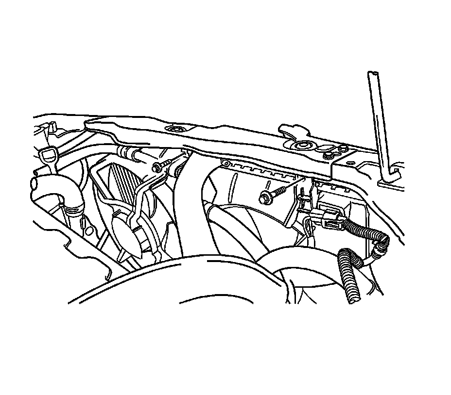4. Lift the fan shroud assembly upward, and remove the fan shroud assembly from the vehicle.