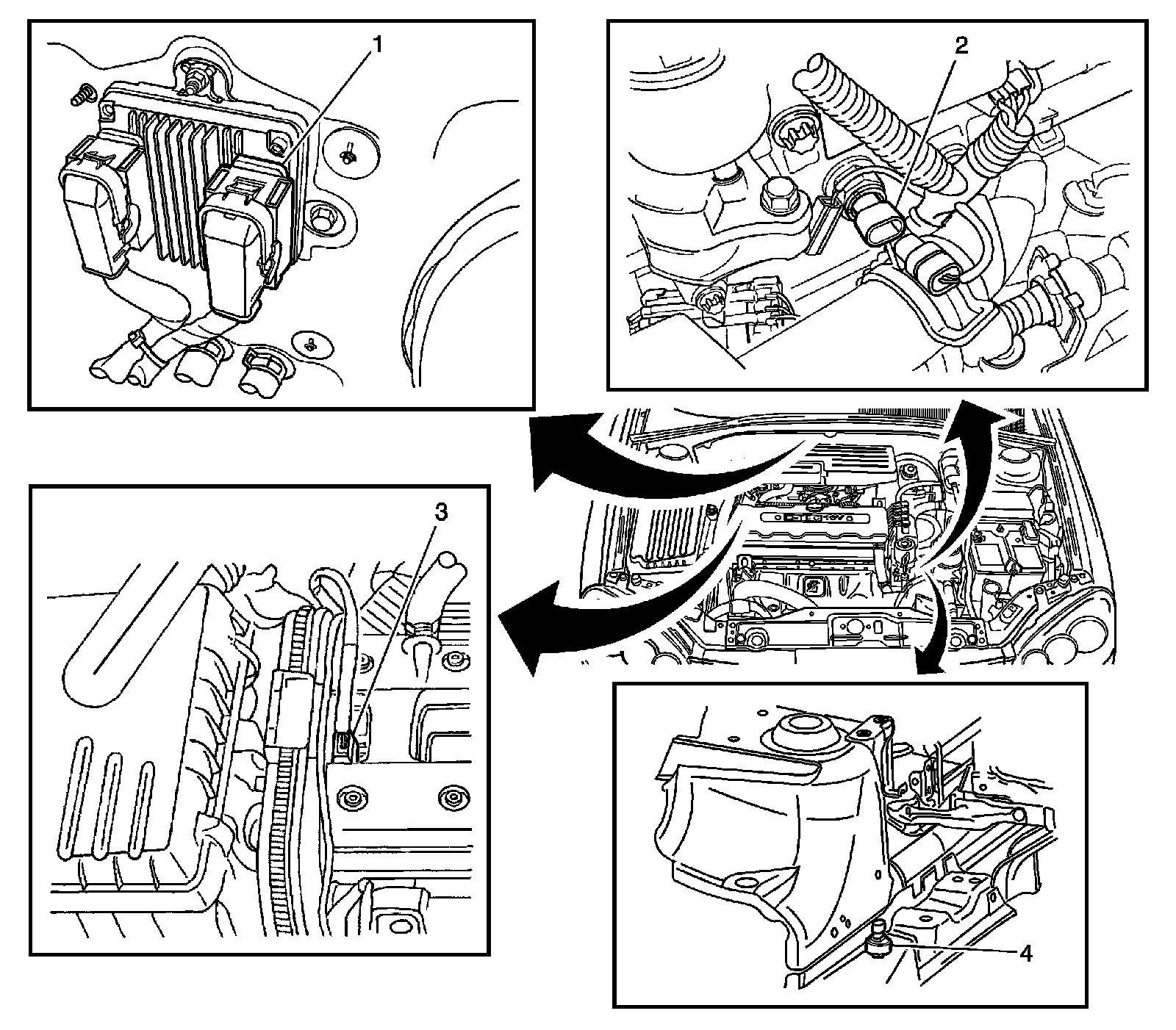 Engine Control Module (ECM), Engine Coolant Temperature (ECT), Camshaft Position (CMP) and Rough Road Sensors