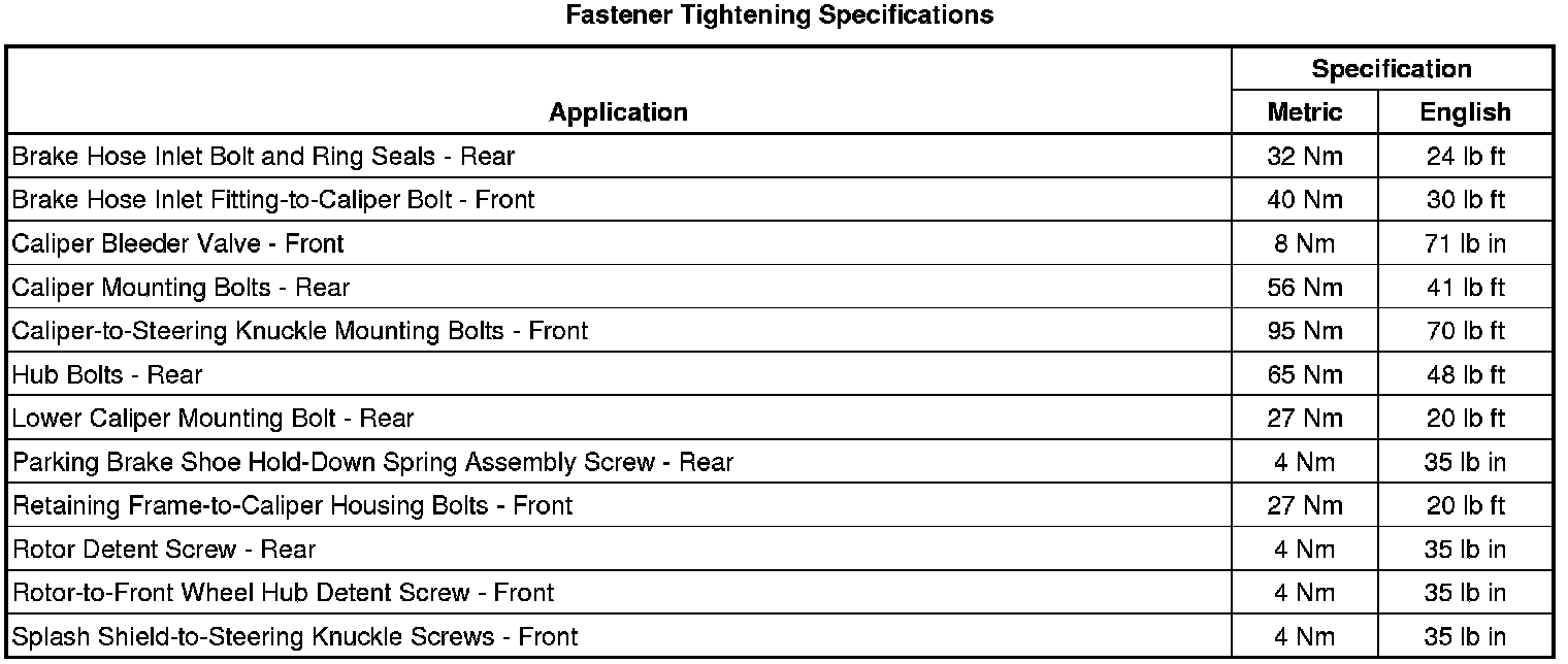 Fastener Tightening Specifications