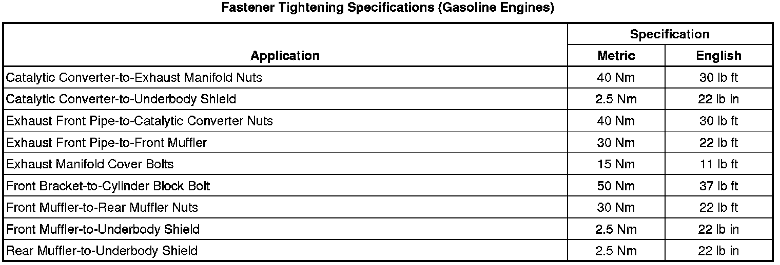 Fastener Tightening Specifications (Gasoline Engines)
