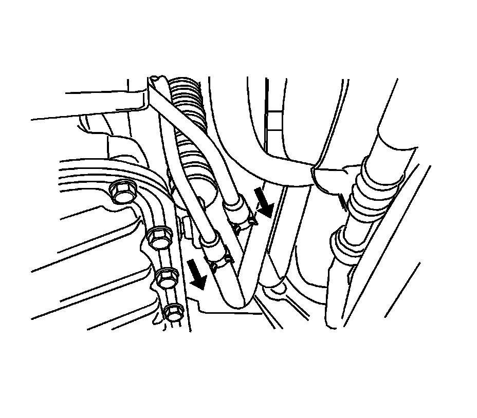4. Disconnect the fluid cooler inlet and outlet hoses from the transaxle.