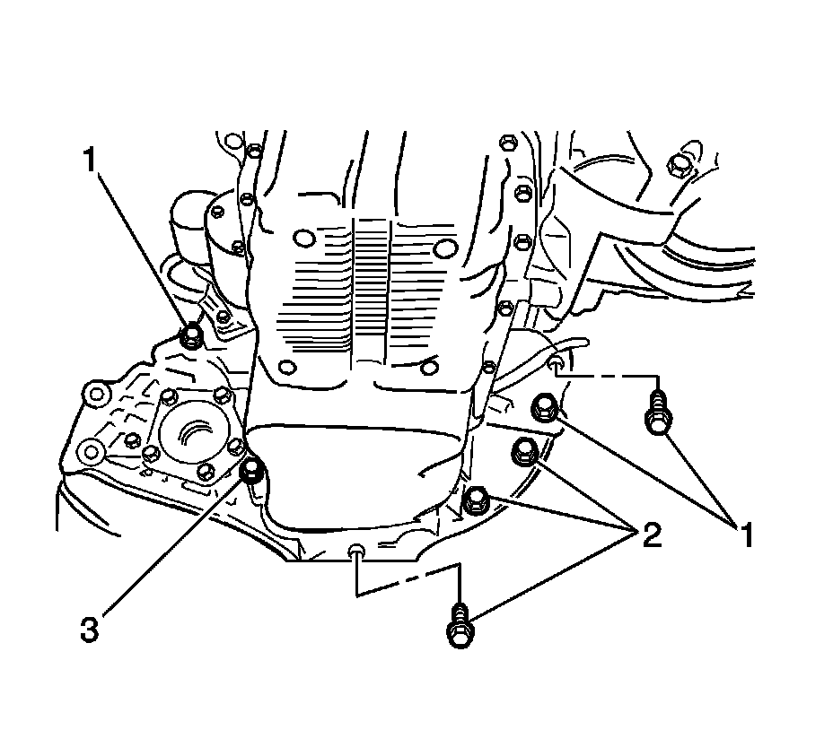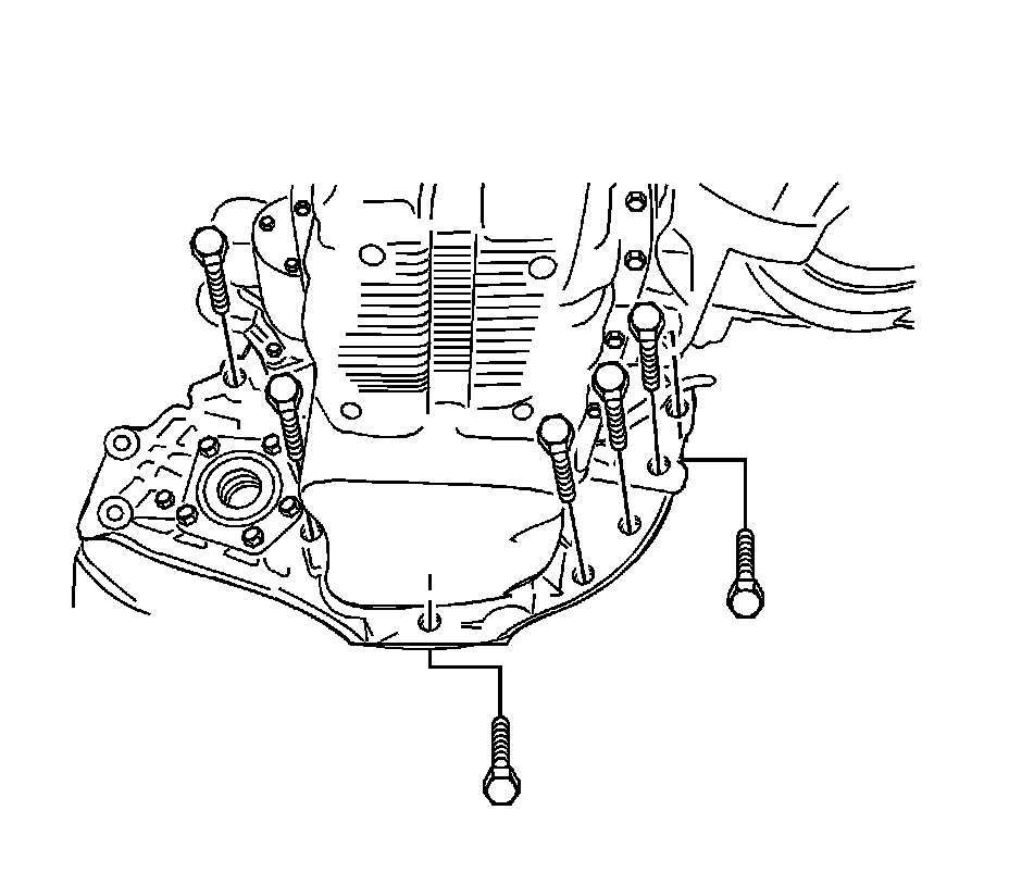 18. Remove the 7 lower transaxle-to-engine retaining bolts.