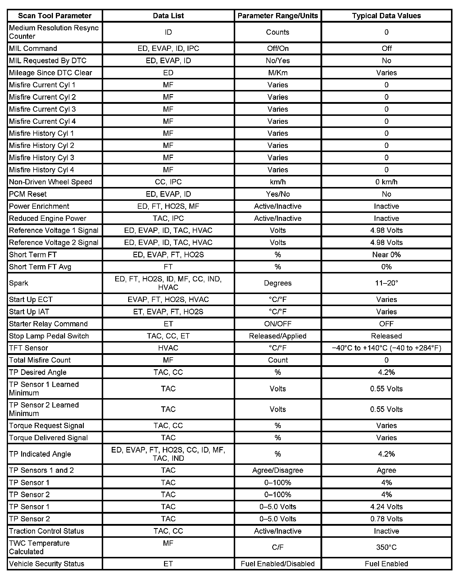 Only the parameters listed below are referenced in this service data for use in diagnosis. If all values are within the typical range described below, refer to Symptoms - Computers and Control Systems for diagnosis. - Symptoms - Engine Controls