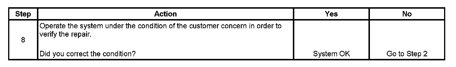 The numbers below refer to the step numbers on the diagnostic table.