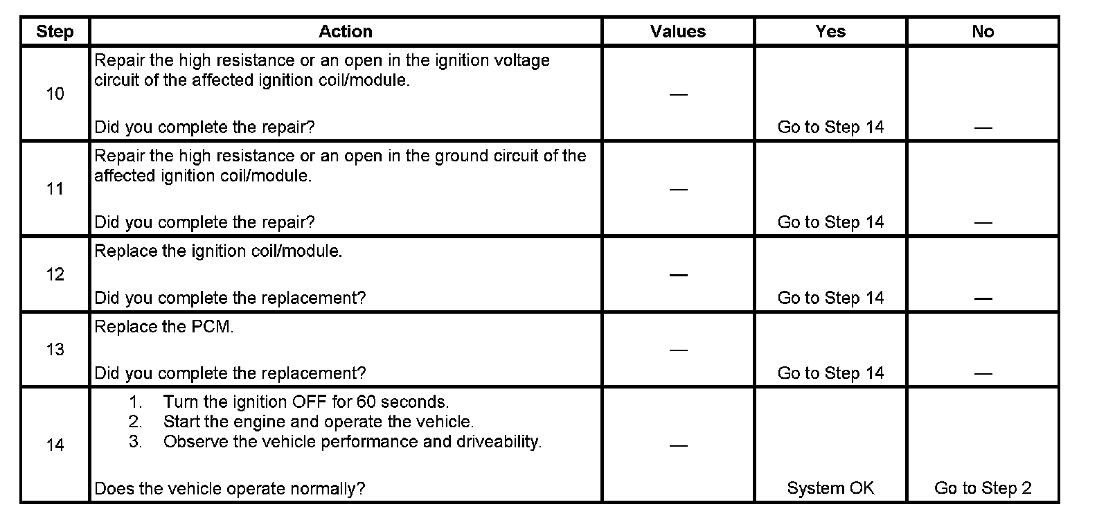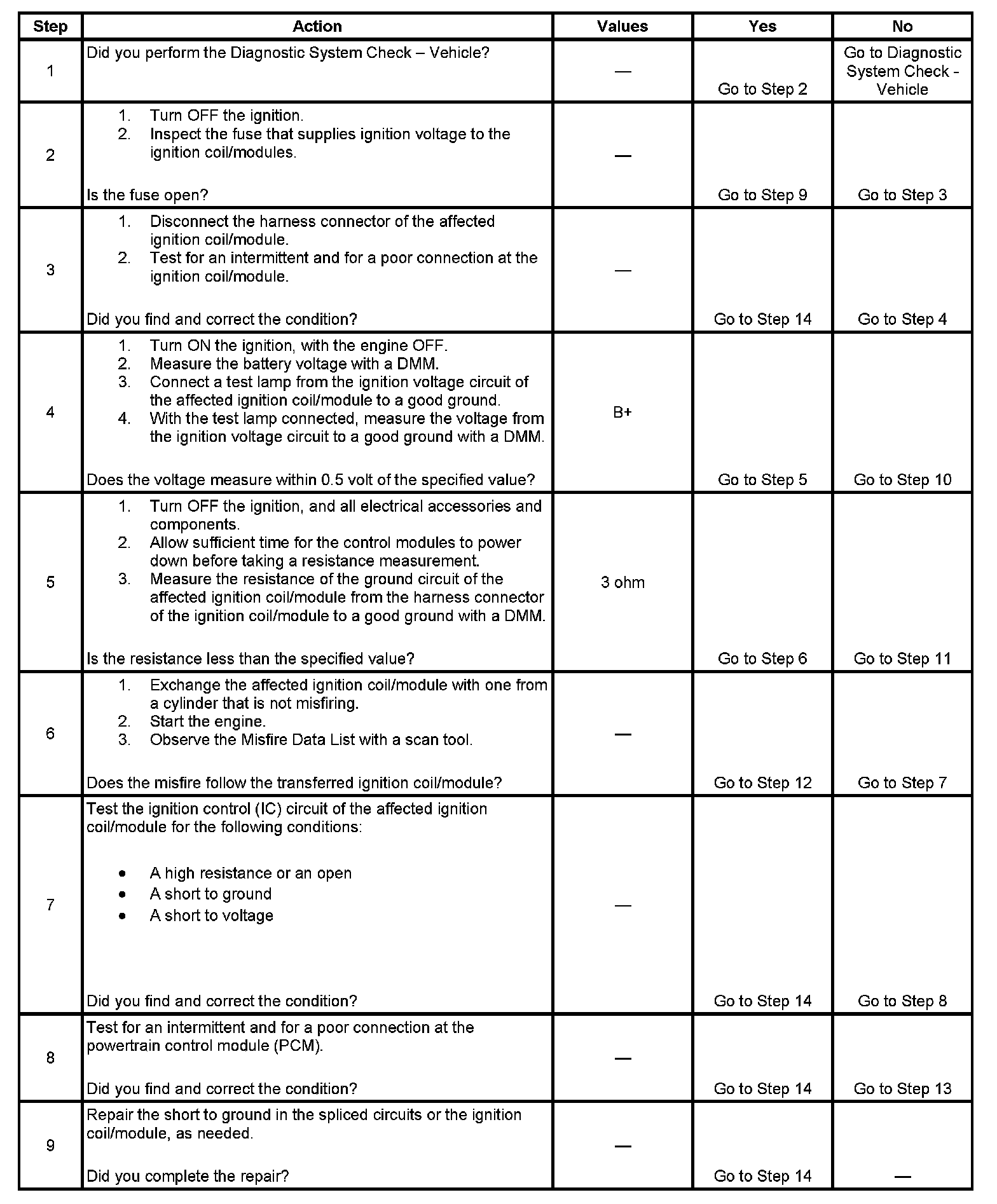 Perform the spark plug inspection procedure before continuing with this diagnostic. Refer to Spark Plug Inspection. Testing and Inspection