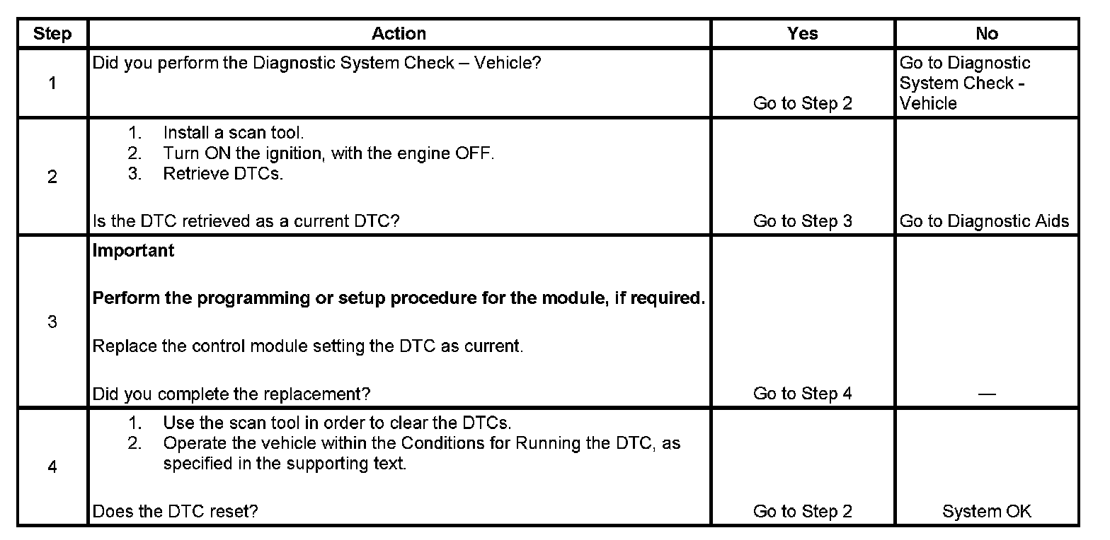 - If this DTC is retrieved as both a current and a history DTC, replace the module.
