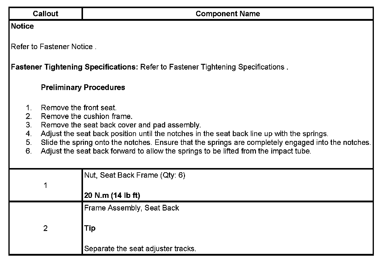 Seat Back Frame: Service and Repair