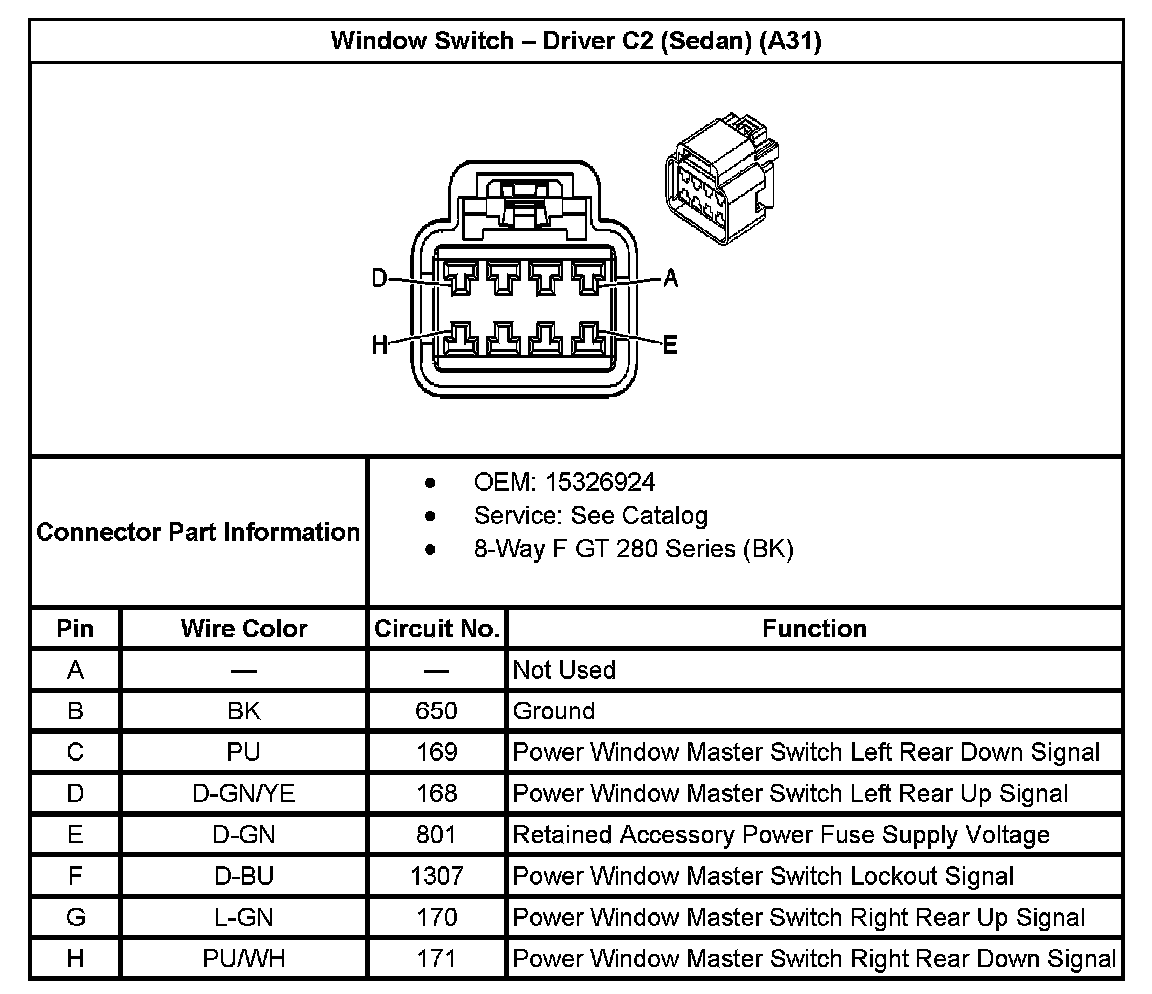 Window Switch - Driver C2 (Sedan) (With RPO Code A31):