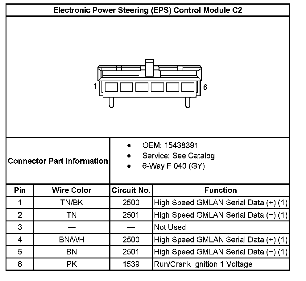 Electronic Power Steering (EPS) Control Module C2: