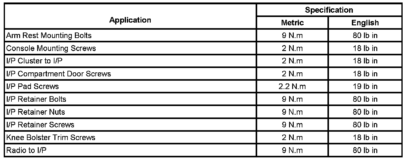 Dashboard / Instrument Panel: Specifications