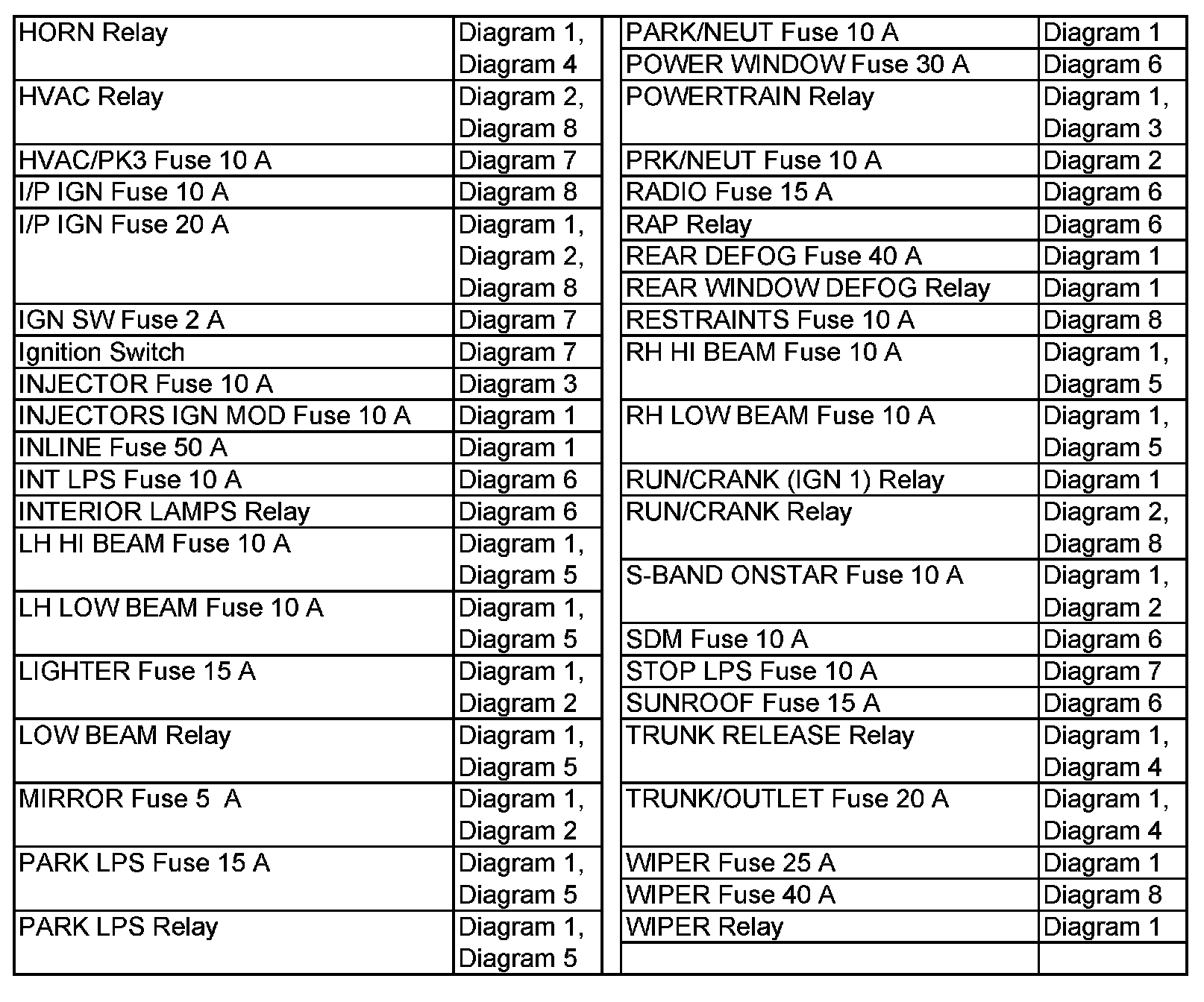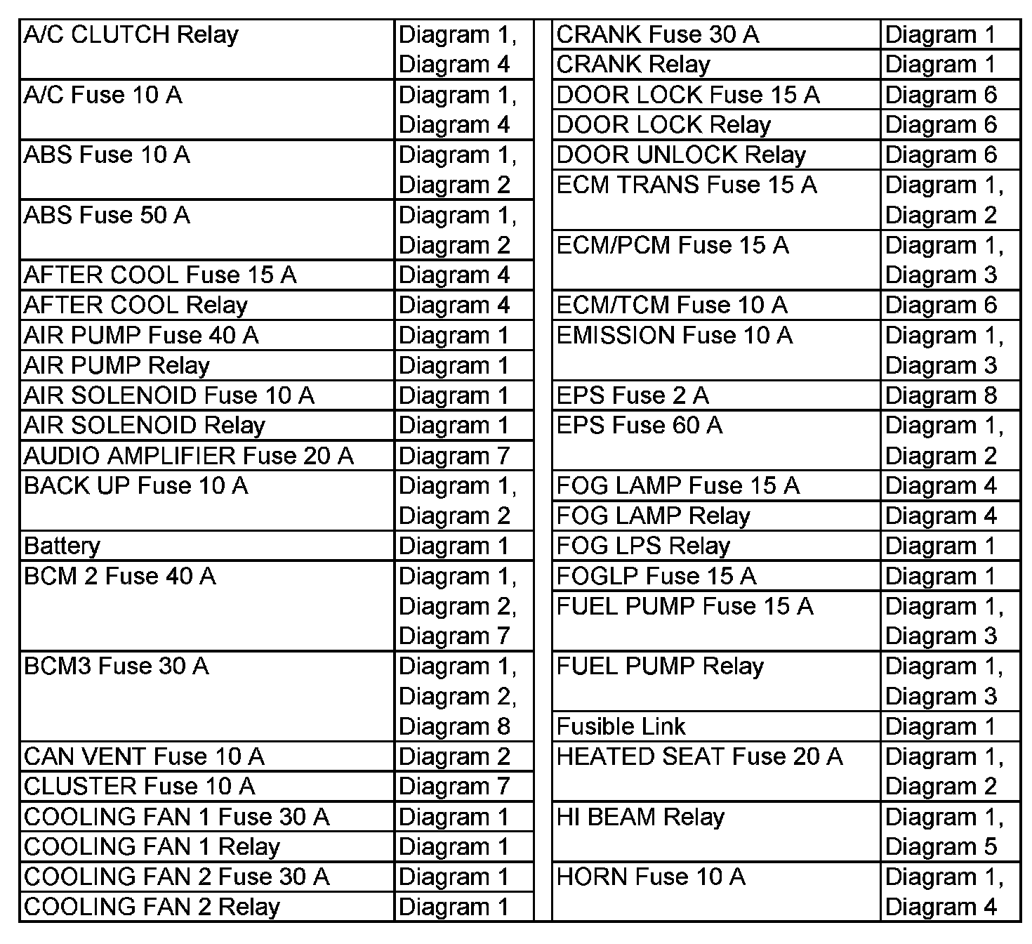 Power Distribution Diagram Index