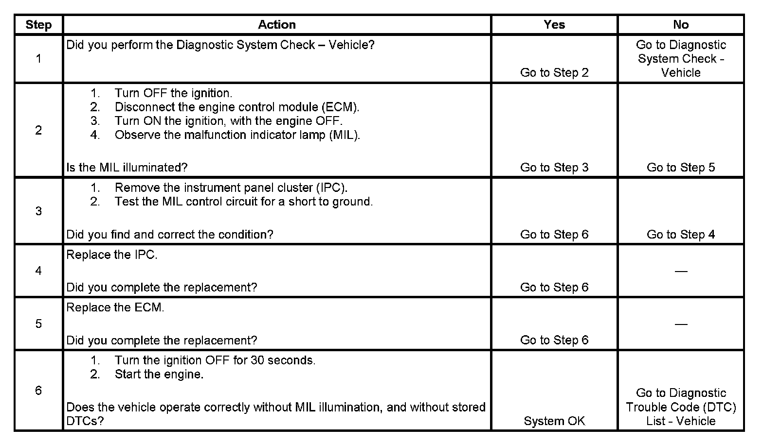 2. This step determines if the condition is with the MIL control circuit or the ECM.