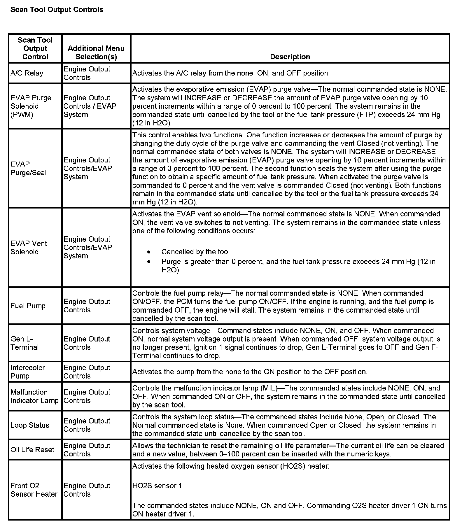 Scan Tool Output Controls