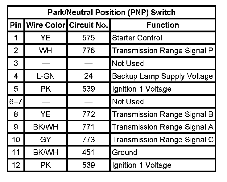 Transmission Position Sensor/Switch: Diagrams