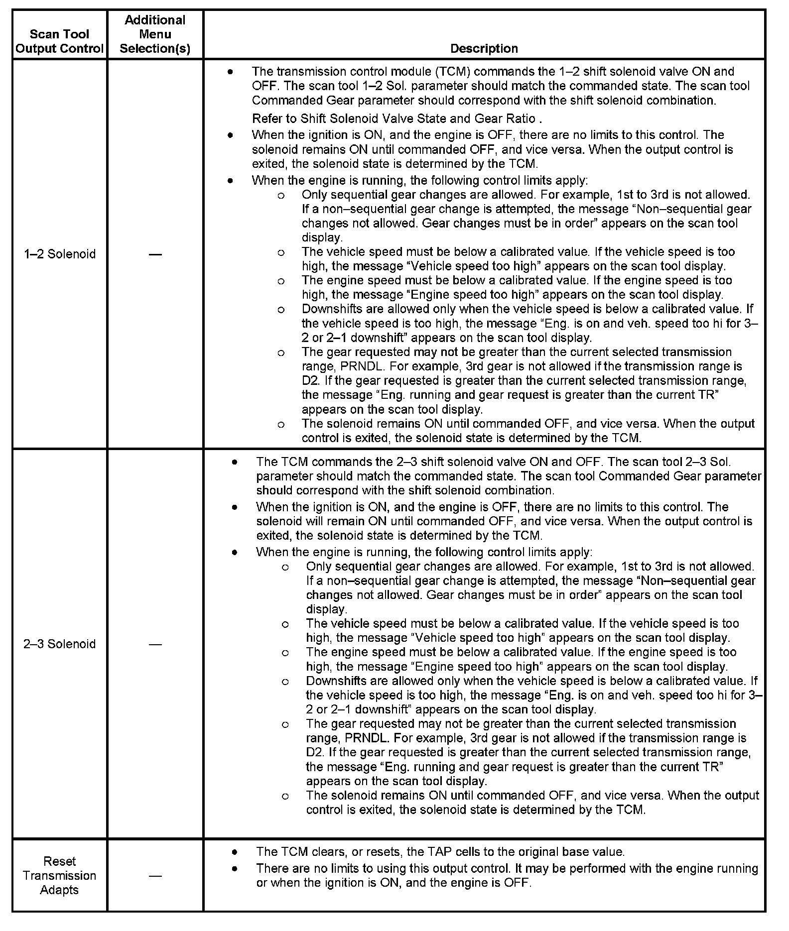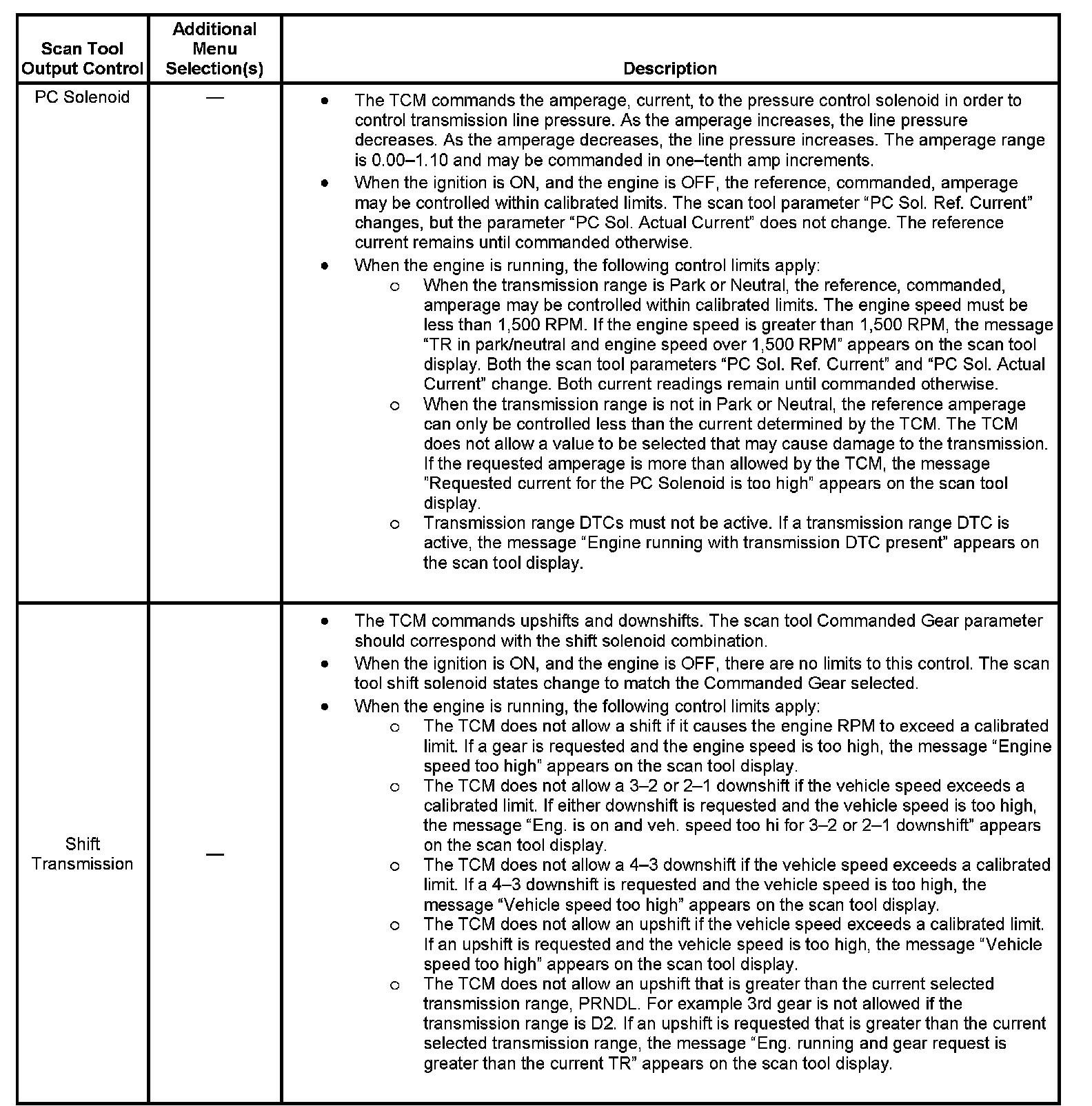 Scan Tool Output Controls: