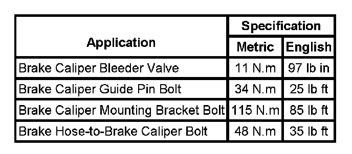 Fastener Tightening Specifications: