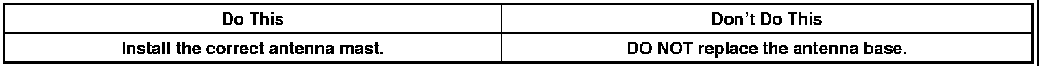 - There are two different design antenna masts available. The antenna masts can be distinguished by the outer bottom of the antenna mast. The first design antenna mast (1) will have a six-sided hex design and a 6 mm (0.23 in) inside diameter thread. The second design antenna mast (2) will have two flats on the outer mast and a 7 mm (0.27 in) inside diameter thread.