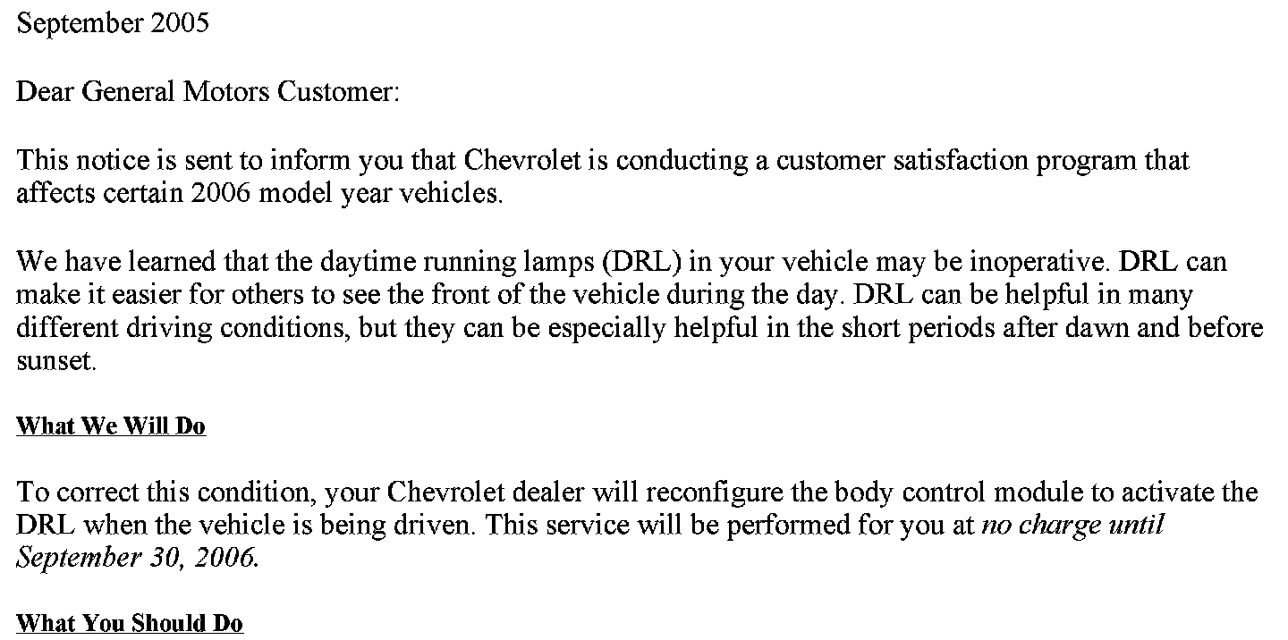 Campaign - Daytime Running Lamps Inoperative