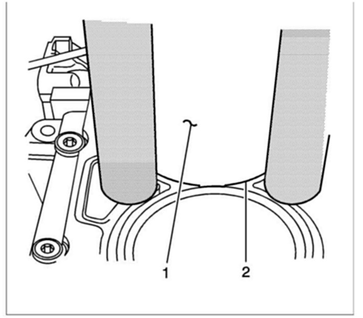 21. Looking at the front of the straight edge, inspect to see if light is protruding through the bottom of the straight edge and the top of the cylinder bore sleeve flange. If light is present on either side of both sides of the cylinder bore sleeve, the cylinder bore sleeve is cut incorrectly and a new cylinder bore sleeve needs to be installed.