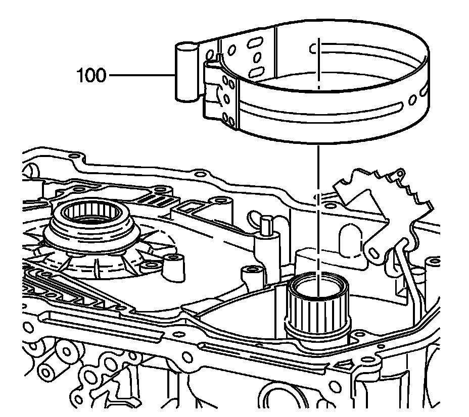 1. Assemble a new Intermediate/Fourth band (100) into the transmission case.
