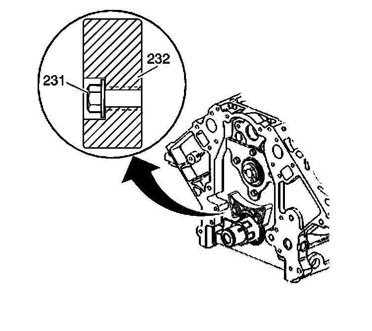 Install the timing chain dampener (232) and bolts (231).