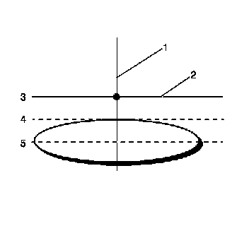 4. Adjust the fog lamp up or down until the top edge of the high intensity zone on the screen is 102 mm (4 in) below the horizontal centerline (2).